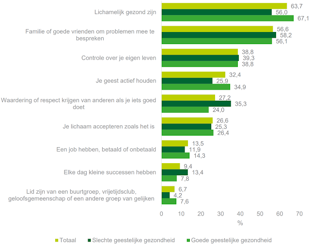voor hun geestelijke gezondheid ervaren. Op de eerste plaats staat lichamelijke